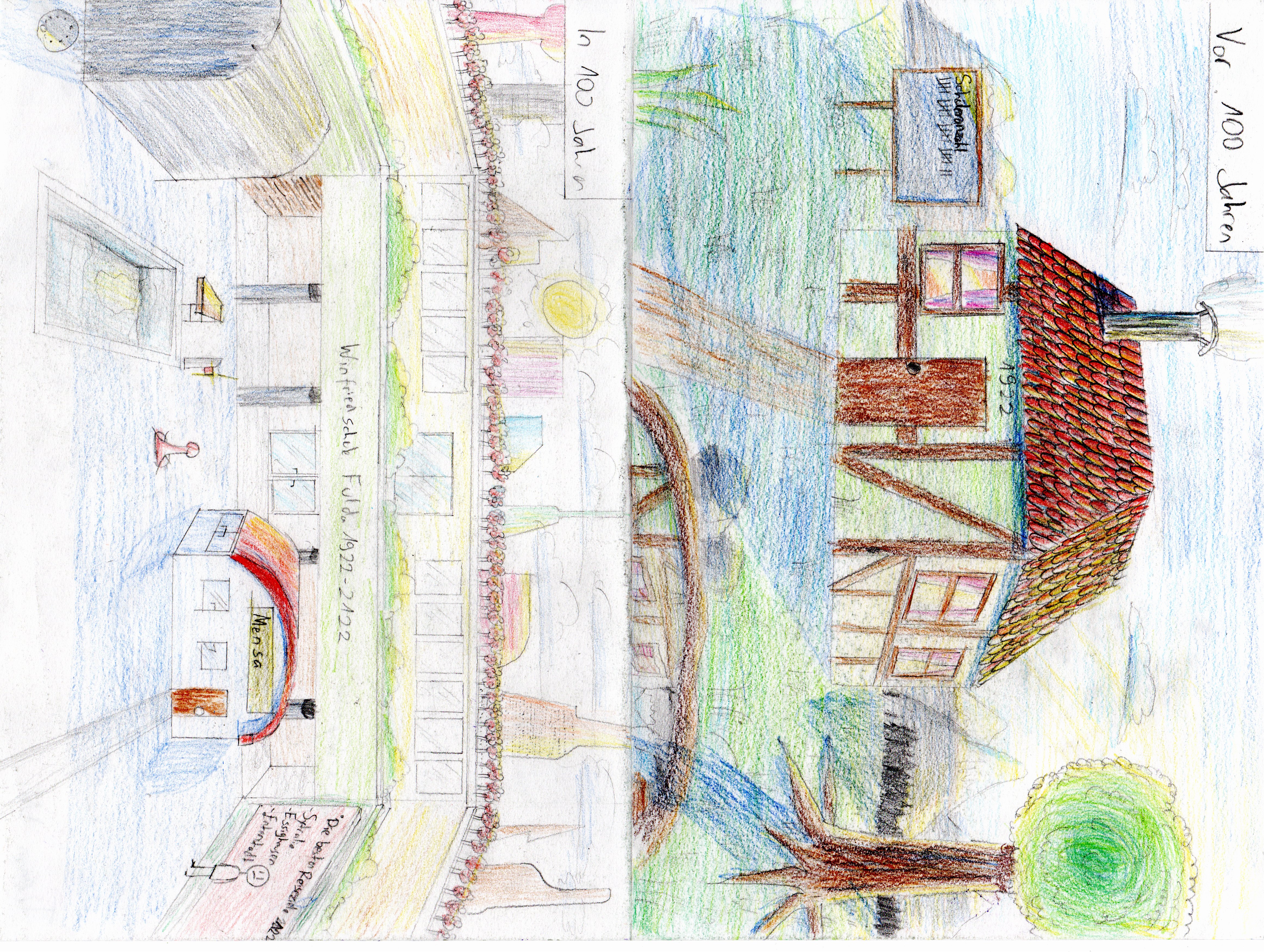 Im Kunstunterricht der Klasse 6b wurde zu der Frage gearbeitet, wie die Winfriedschule vor 100 Jahren aussah und wie sie vielleicht in 100 Jahren aussehen wird. Hier die Werke der jungen Kunstschaffenden…